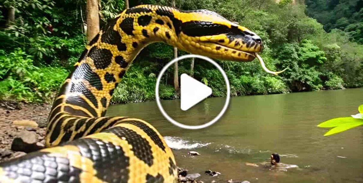 Când s-a apropiat, și-a dat seama că în fața lui se afla o anacondă masivă, care încerca să traverseze râul.